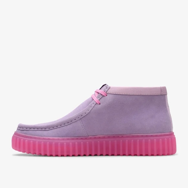 In soft pink suede, this Pokémon-inspired take on the Torhill Explore pays tribute to ENDGAME character, Mewtwo. We’ve crafted it with nostalgic Pokémon references throughout, from the embroidered Poké Ball motif and Pokédex numbers on the heel tape, to the pixelated logo fobs and woven pixelated label on the tongue. And with signature Clarks comfort features like soft molded footbeds and durable rubber outsoles, it unites practicality with playfulness.