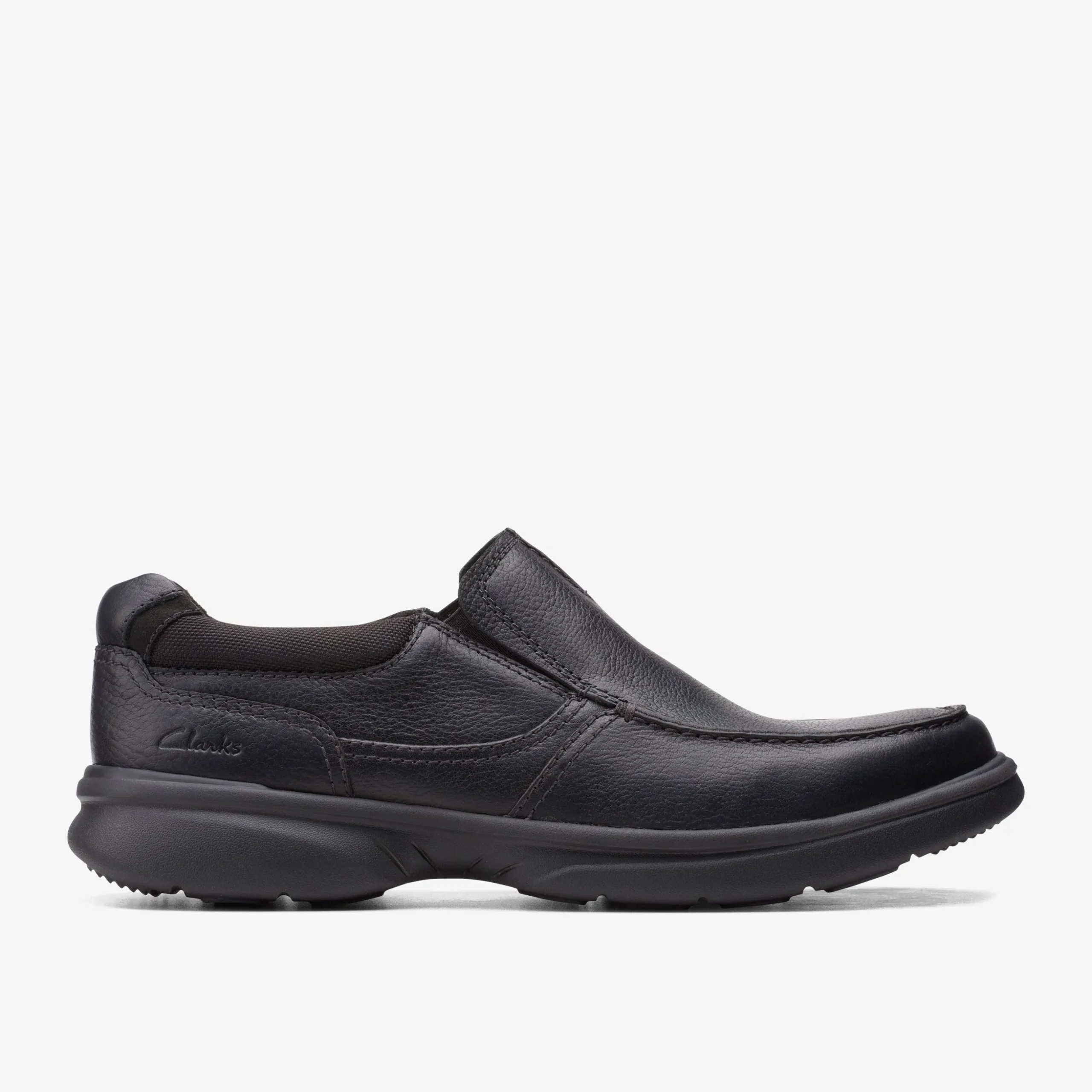 Versatile slip-on Bradley Free pairs a black tumbled leather upper with a lightweight sneaker-style sole. The subtle elastic gores provide a flexible, snug fit, and its full-length cushioning and a moisture-wicking OrthoLite® footbed give it Ultimate Comfort.